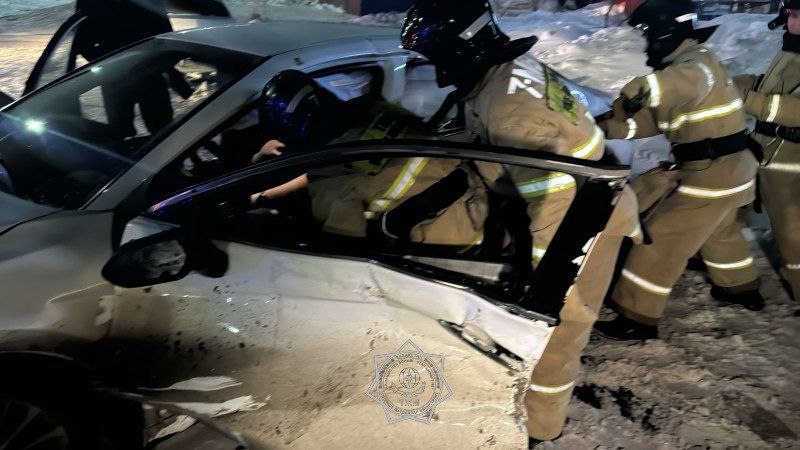 В Астане столкнулись малотоннажный грузовик и легковой автомобиль, в результате ДТП водитель и пассажир легковушки оказались зажатыми в покорёженной машине, передаёт BaigeNews.kz.