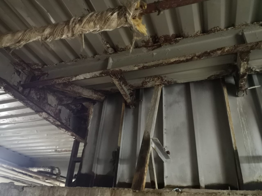 Техническое состояние кровли, в связи с деформацией отдельных элементов ферм, отслоением антикоррозийной защиты металлических поверхностей, коррозии металла, образованием трещин в сварочных швах и протеканию кровли, оценивается по III категории (ограничена работоспособная конструкция), это делает невозможным обеспечение должного уровня безопасности жизни посетителей.