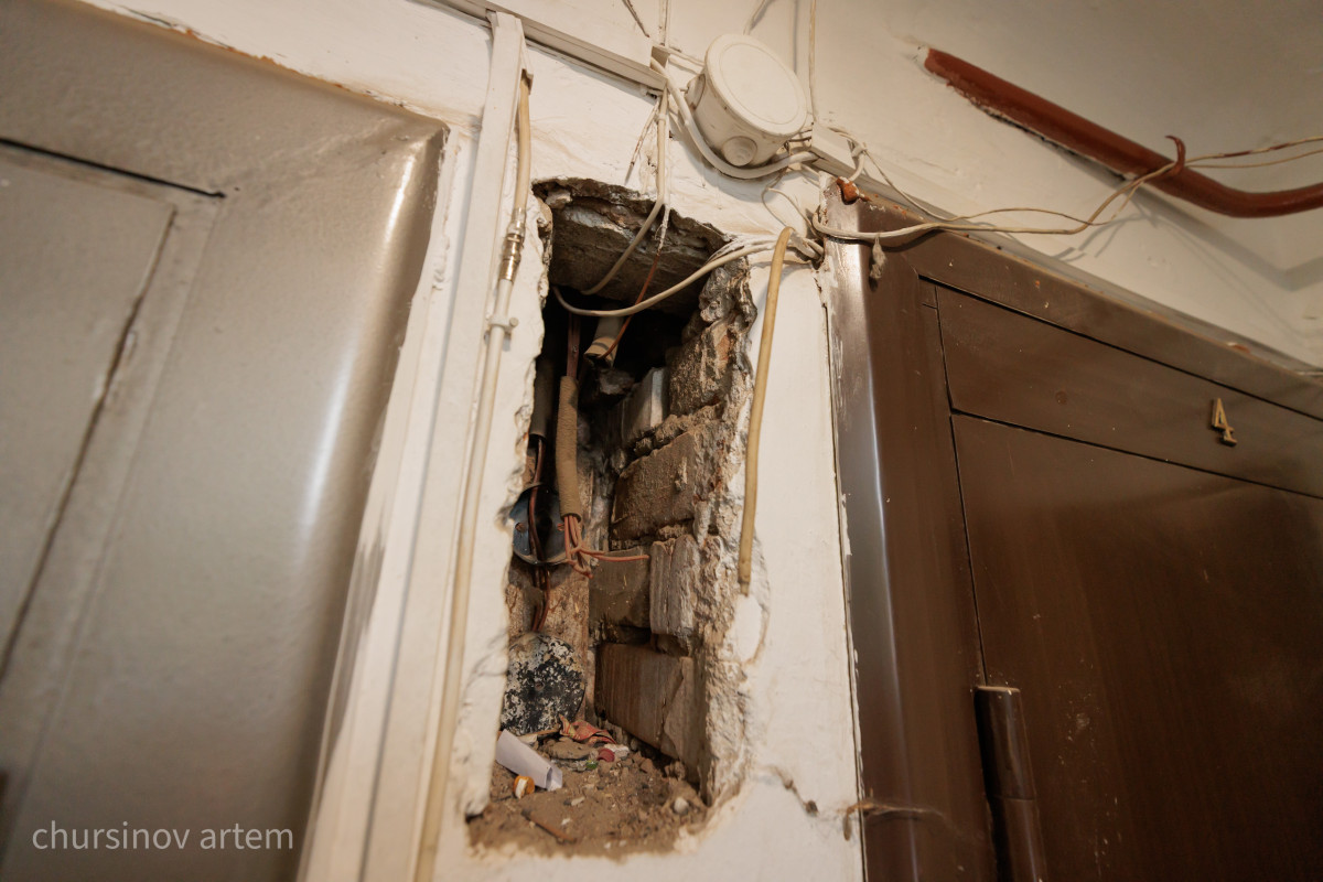 "Здание нужно сносить как ветхое. У нас и в подвале проблемы, канализация забивается. И трещины по углам. Протечки крыши постоянные. Раньше у нас и в квартире текло, но мы ремонт сделали. Пока помогло. Денег нет покупать другое жилье. Квартиру взяли по средствам", - рассказывает жительница дома.