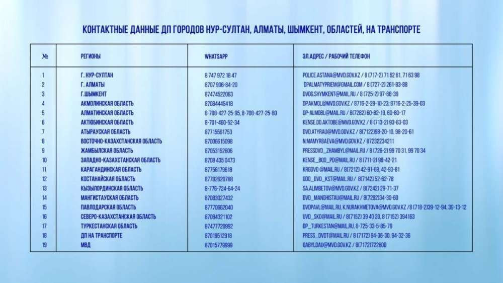На прием к министру, начальникам департаментов полиции и уголовно-исполнительной системы запись производится с 23 по 25 ноября по телефонам, электронным адресам и WhatsApp-номерам, которые размещены на портале МВД, сайте Polisia.kz, страницах министерства в социальных сетях.