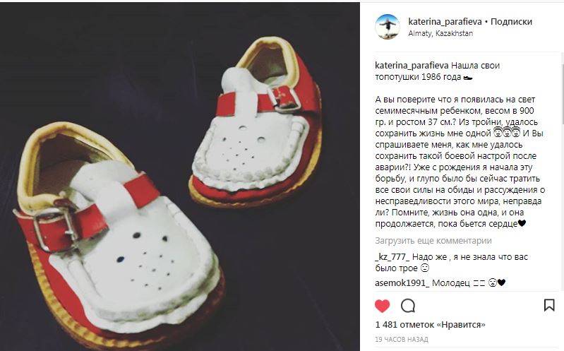 Лишившаяся ног в жутком ДТП, которое произошло этим летом в Алматы, Екатерина Парафиева - девушка, которая демнстрирует обществу огромную силу воли и стойкость. Несмотря на то, что сейчас она переживает не самое простое время, девушка радуется жизни. Однако в детстве Екатерина чудом выжила, родившись семимесячным ребенком.
