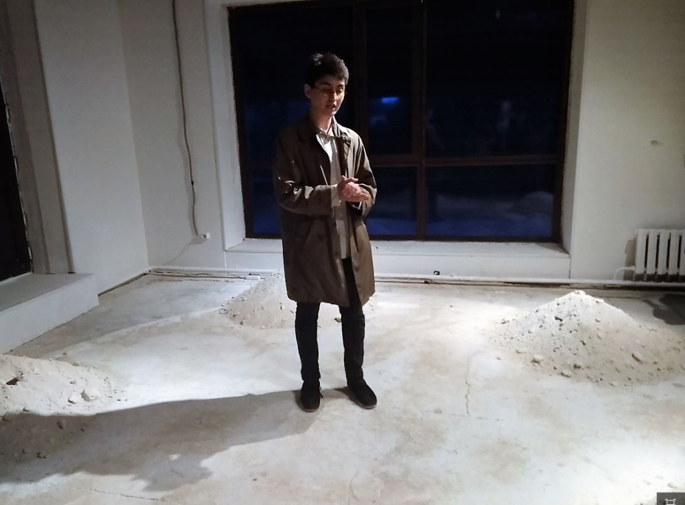 "Я хотел показать всю сакральную и духовную составляющую человека, не делая акцента на его пол, религию, жизненную позицию. Воссоздал ту атмосферу, когда простые вещи хранят и передают высокое и божественное. И каждая деталь здесь говорит об этом: неповторимая форма узоров на ракушечнике, руки, сделанные из смолы, священная вода. Каждый из элементов рассказывает свою историю, но вместе они создают индивидуальную историю и ощущение для каждого человека", – пояснил автор и куратор выставки Анвар Мусрепов.