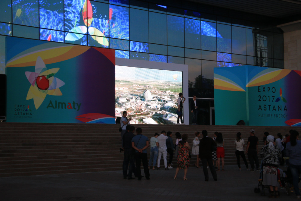 Помимо трансляции открытия, между гостями разыгрывались билеты на ЭКСПО-2017. Самые активные алматинцы получили возможность своими глазами увидеть событие мирового масштаба.