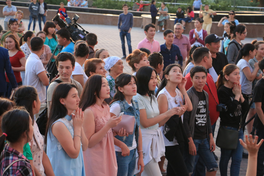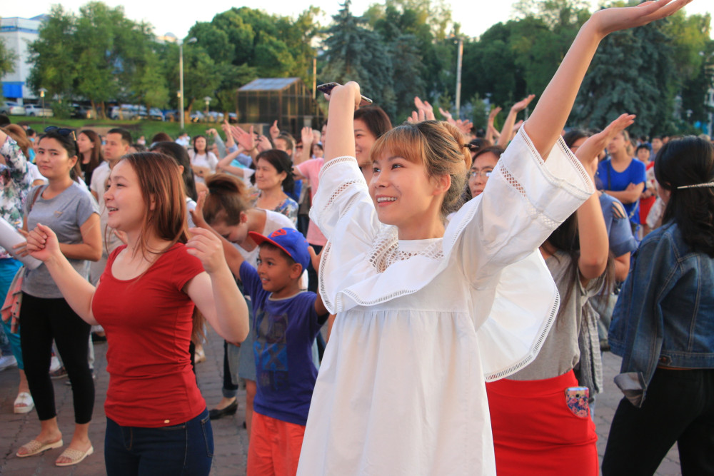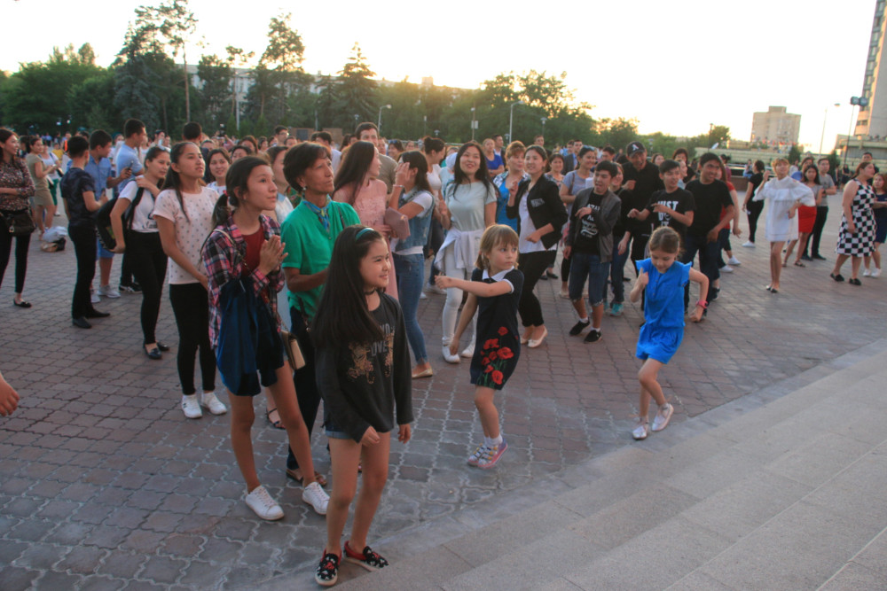 В честь открытия выставки и в знак поддержки и соучастия в этот вечер алматинцы приняли участие в заводном флешмобе под зажигательную музыку. А ведущие сделали массовое селфи для столицы.