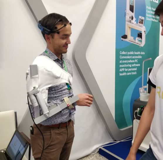 "К разработке проекта нас подтолкнула ситуация с распространенными болезнями, такими как инсульт, который находится в первом ряду заболеваний в Казахстане. Мы провели анализ. Начали публиковать теоретические публикации, а затем вышли на стартап. Проект заключается в том, что мы считываем сигналы мозга с помощью специального шлема, потом сигналы передаются на экзоскелетон (роботизированная рука-протез). Силами мысли больной сможет управлять рукой. Таким образом это возможность эффективной реабилитации после инсульта полной или частичной парализованности руки. С помощью протеза-руки больной может делать все рекомендуемые упражнения и проходить эффективный курс реабилитации", - сказал автор и руководитель проекта Relive.kz, член группы разработчиков Назарбаев университета Бейбит Абдикенов.