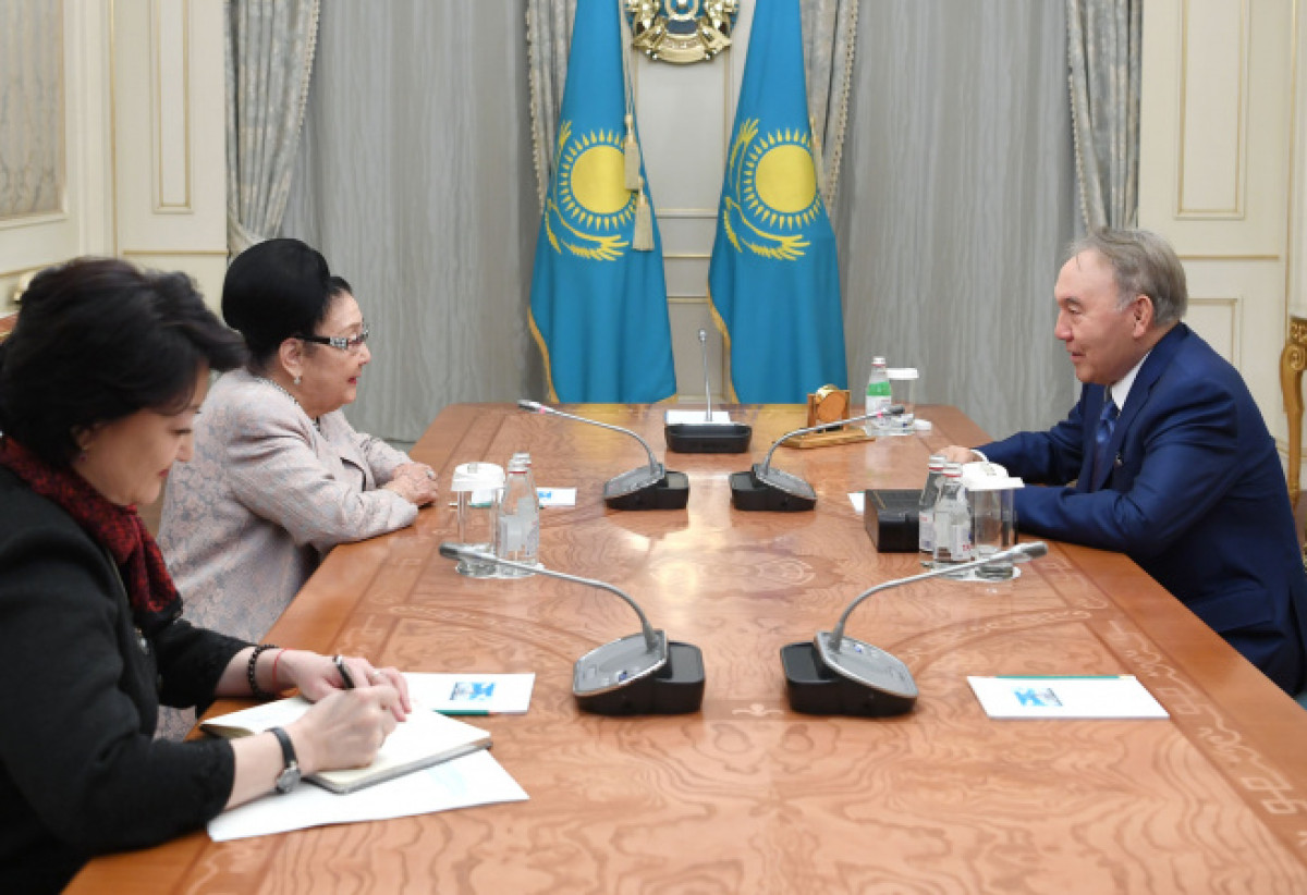 Тулегенова в свою очередь рассказала Елбасы об итогах X конкурса вокалистов, который состоялся при содействии Фонда Первого Президента.