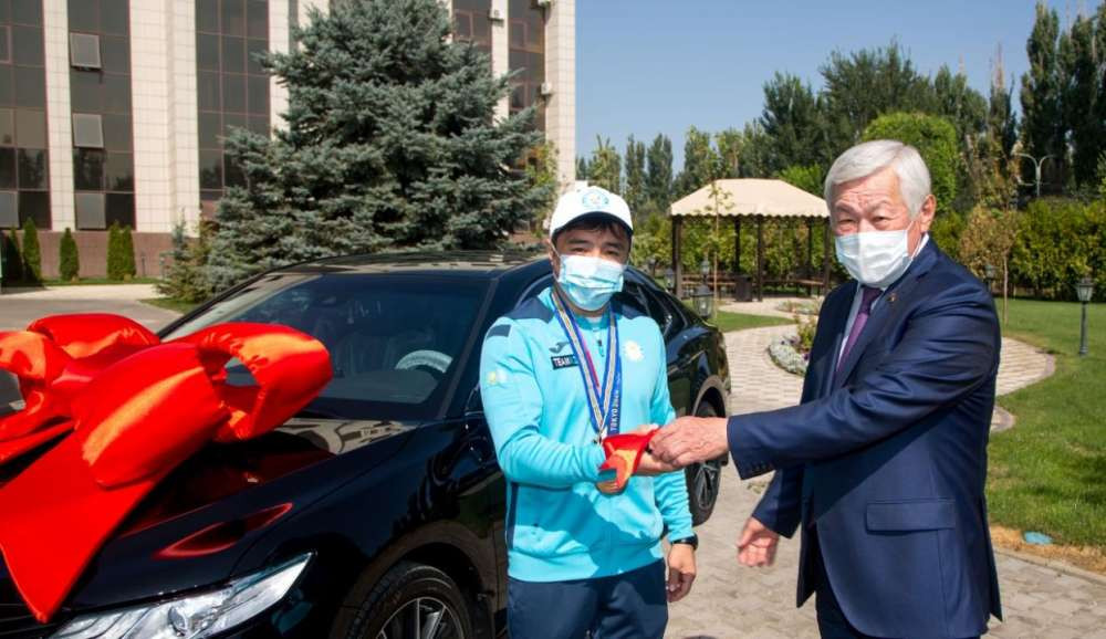 Бердибек Сапарбаев вручил Елдосу Сметову ключи от нового автомобиля и пожелал новых побед и достижений.