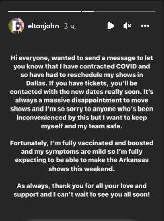 "Привет всем! Хотел сообщить, что я заразился COVID, поэтому мне пришлось перенести шоу в Далласе. Приношу извинения всем, но я бы не хотел подвергать опасности себя и свою команду", - сообщил Джон.