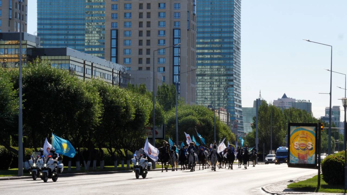 В столице Казахстана с семи утра около 30 всадников на лошадях прошлись по знаковым местам Астаны. Необычный перформанс был организован в преддверии 5-х Всемирных игр кочевников, передаёт BaigeNews.kz со ссылкой на пресс-службу организаторов ВИК.