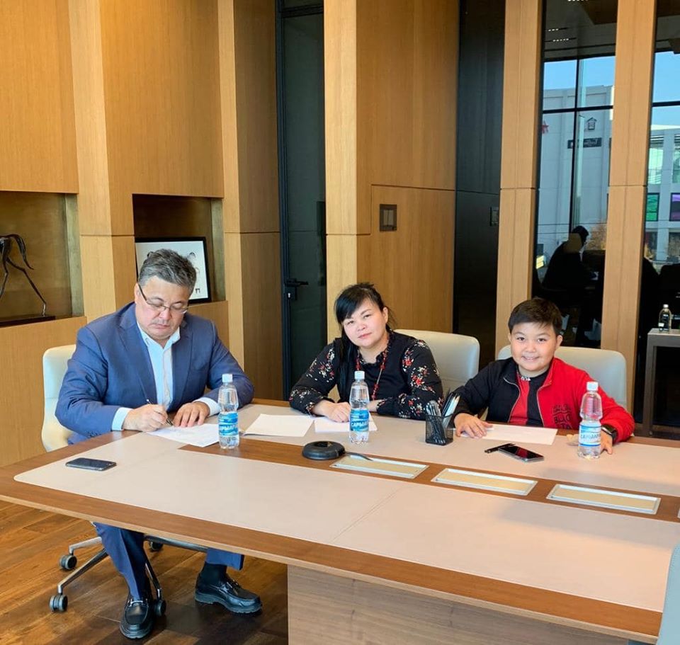 "Подписали договор об оказании спонсорской помощи для участие Ержана Максима в ежегодном международном телевизионном песенном конкурсе "Детское Евровидение" между нашей корпорацией "Алмалы", в лице нашей дочерней компании минеральная вода "Сарыагаш" и мамой Ержана Гульмирой Алибек. Ждём победу Ержана Максима на этом конкурсе", - написал Бахыт Сапаров.