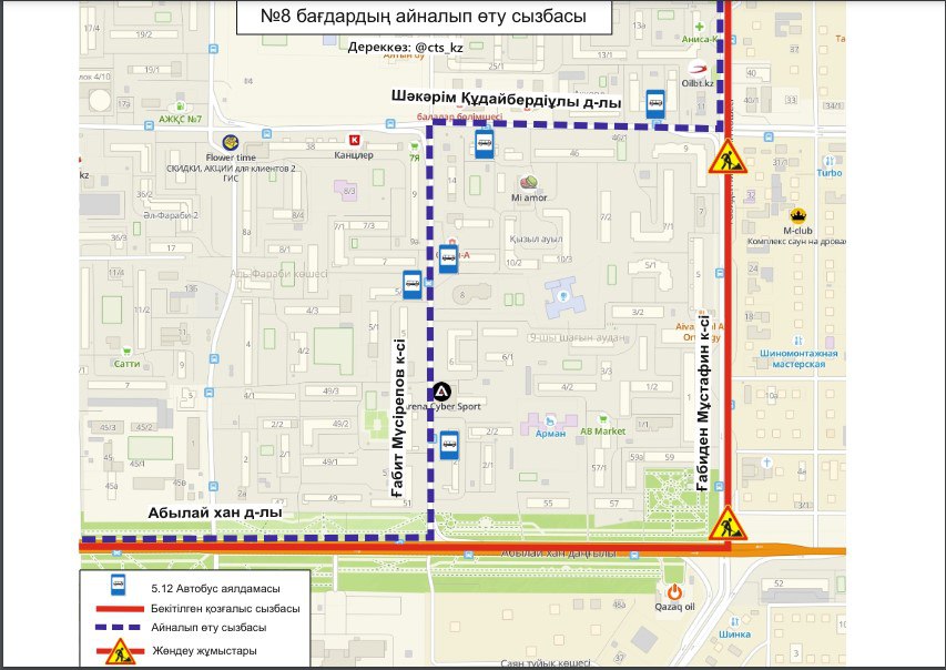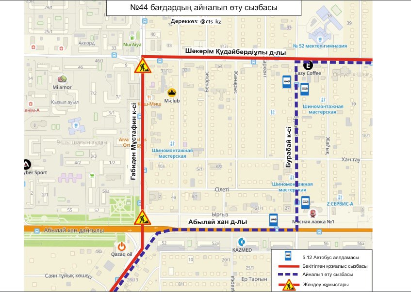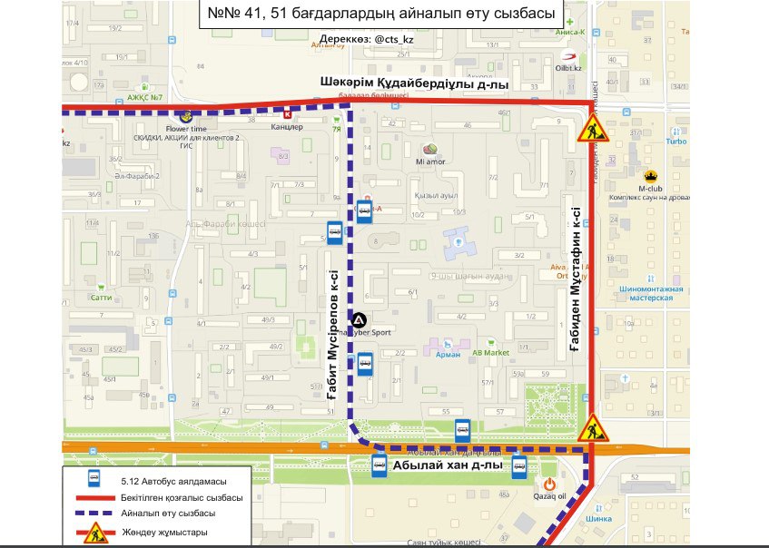 "До завершения ремонтных работ, временно изменены схемы движения маршрутов №№ 8, 41, 44, 51. Просим заранее планировать свой маршрут", - сообщили в ТОО "City Transportation Systems".