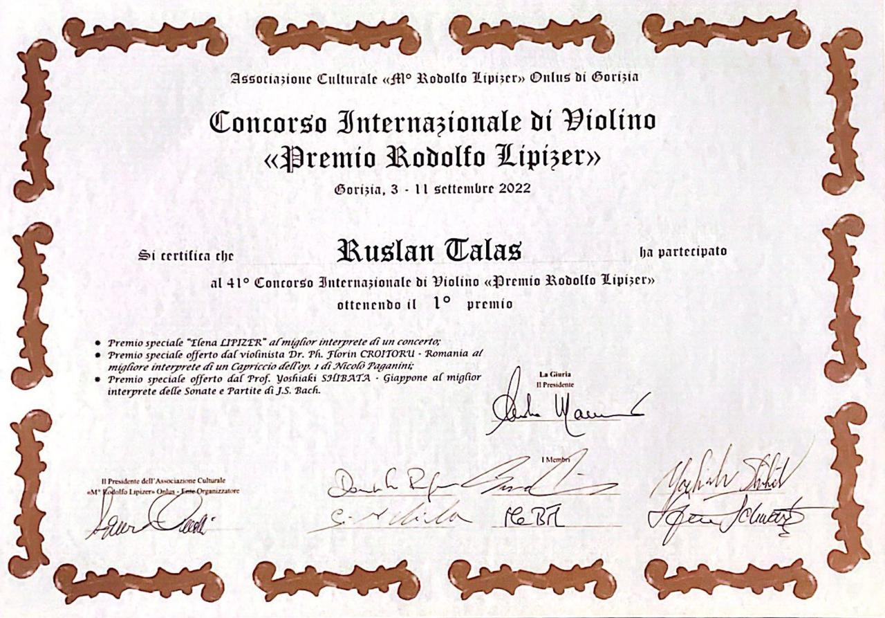 Первое место на Международном конкурсе им. Родольфо Липицера в Италии занял скрипач из Казахстана Руслан Талас, сообщает BaigeNews.kz со ссылкой на сайт конкурса.