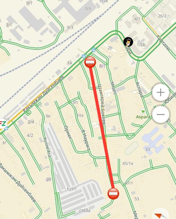 "В связи с проведением ремонтных работ с 22 по 30 мая будет полностью перекрыто движение на участке улицы Ш.Бокеева от ул. Дуйсенбаева до тупика", - говорится в сообщении.