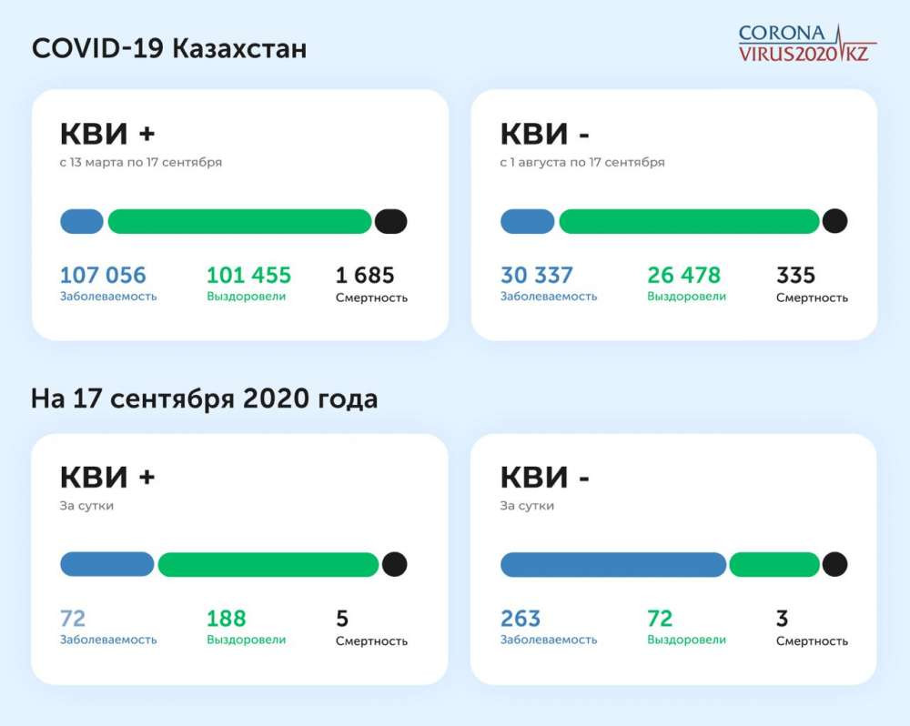 В Казахстане за сутки пять человек скончались от коронавируса и трое - от пневмонии, передает BaigeNews.kz со ссылкой на Coronavirus2020.kz.