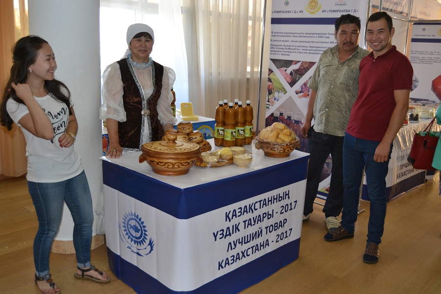На выставке была представлена самая разная продукция: продукты питания, изделия декоративно-прикладного творчества, обувь, стройматериалы, мебель, промышленное оборудование и многое другое. Ознакомился с экспозицией и принявший участие в мероприятии заместитель акима области Асхат Кайнарбеков.