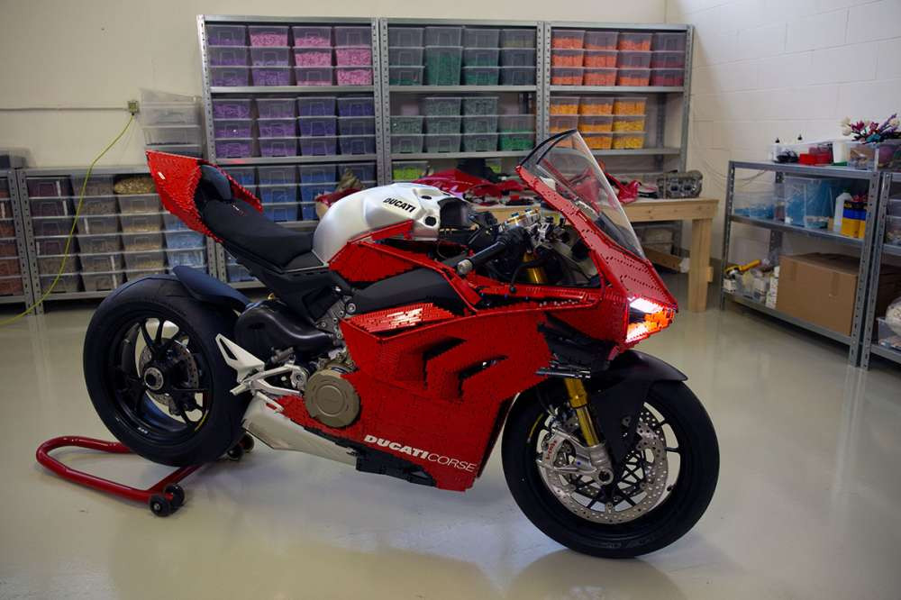 Зангельми взял за основу реальную "начинку" мотоцикла Ducati Panigale V4 R и принялся собирать его внешнюю панель из Lego-деталей красного, черного и серого цветов. Всего для мотоцикла потребовалось 15 тысяч деталей.