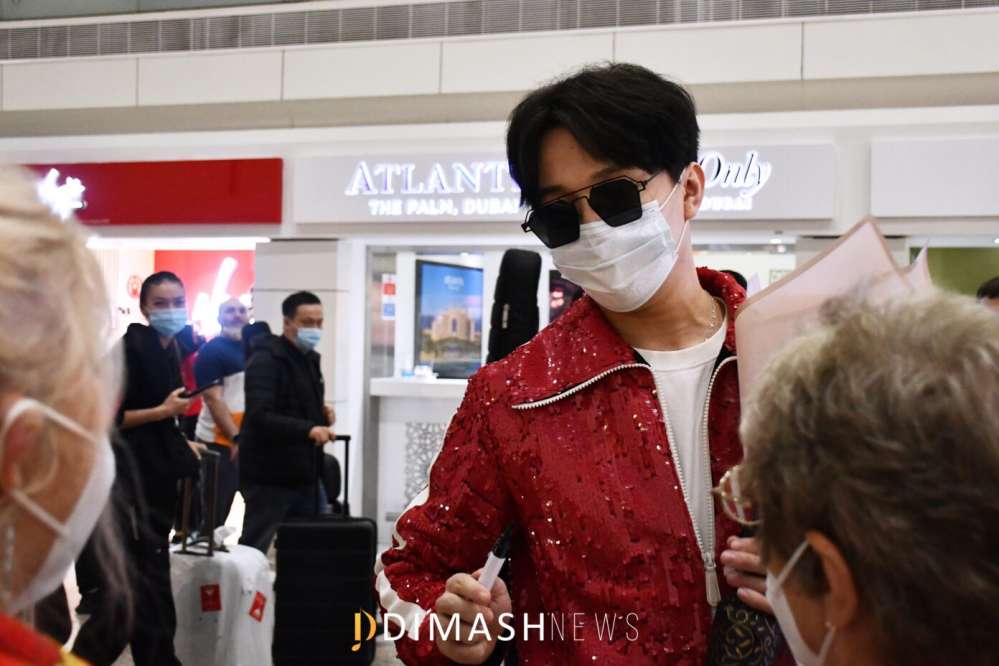 В аэропорту Димаша, его семью и членов команды встречали поклонники артиста из Объединенных Арабских Эмиратов, Казахстана, России, Ирана, Сербии, Польши, Франции, Таиланда, Великобритании, Австралии, Южной Африки и других стран.