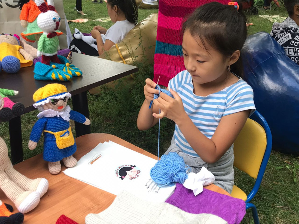 "Вязание это моё увлечение, хобби, которое превращается во что-то очень масштабное. С поддержкой акимата Астаны мы организовали фестиваль для людей, которые любят вязать. Такой фестиваль проходит в столице впервые. Почему мы выбрали такое название "Йога мозга"? Потому что вязание – это деятельность, развивающая мелкую моторику. А работая с этим, мы развиваем мозг, при этом люди самореализуются. Я работаю с инструктором при медицинском центре психического здоровья, там мы обучаем этому ремеслу людей с инвалидностью. Благодаря тому, что я там работаю, я поняла, что на самом деле это такая деятельность, которая позволяет людям раскрыться, найти себя. Благодаря этому люди меняются. Это своего рода воспитание мозга", - рассказала социальный предприниматель и по совместительству основатель фестиваля Рахима Мукушева.