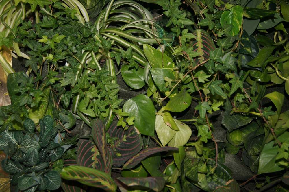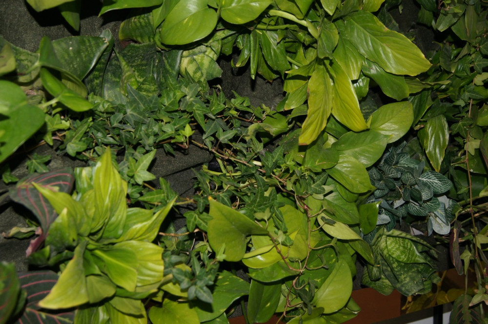 Ухаживать за такой стеной очень просто, говорит дизайнер. Сзади специальной панели размещен специальный субстрат, в который заворачиваются корни, туда входит керамзит, перлит, удобрения, мох, чтобы держалась влажность, гидрогель. Все необходимые вещества из специальной емкости поднимаются вверх по панели с помощью трубочек. Смесь подается с помощью специального насоса, происходит капельное орошение, растение живет.