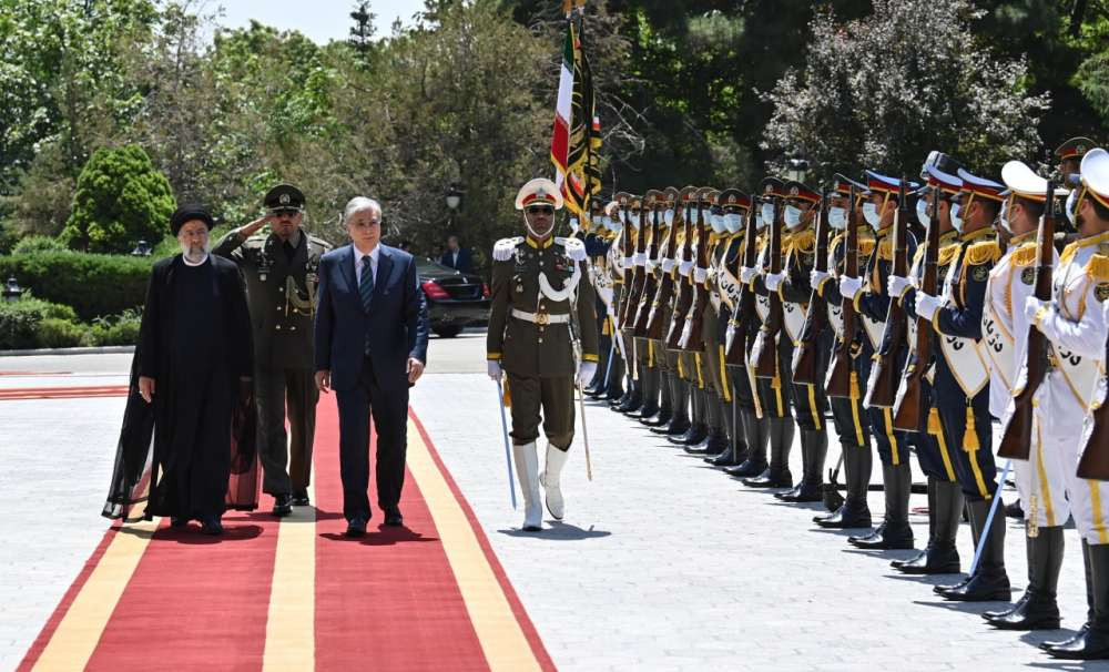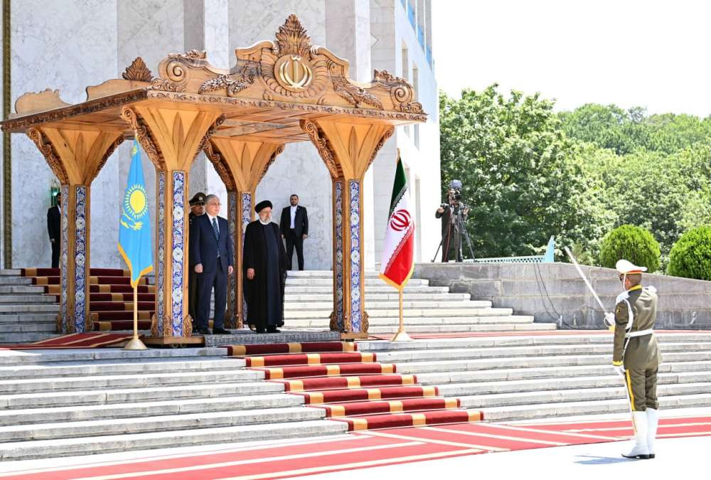 Начальник почётного караула отдал рапорт лидерам двух стран. После исполнения гимнов Казахстана и Ирана Касым-Жомарт Токаев и Ибрахим Раиси представили друг другу членов официальных делегаций.
