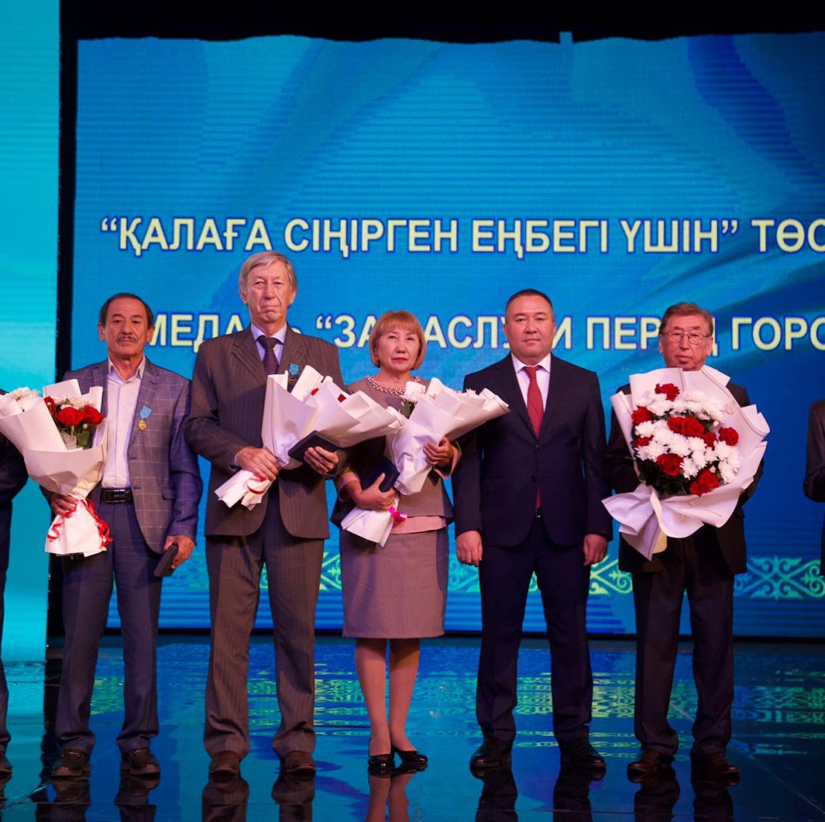На мероприятии ряд граждан наградили нагрудным знаком "За заслуги перед городом", а также благодарственными письмами и сертификатами на 100 тысяч тенге.