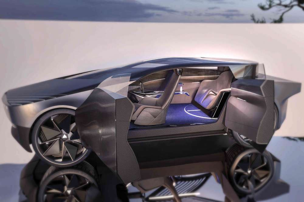 В салоне седана есть пространство в стиле гостиной с панорамной стеклянной крышей для максимально расслабляющей езды. Сиденья задних пассажиров поворачиваются на 180 градусов, чтобы улучшить обзор и помочь пассажирам общаться. Внешний вид напоминает Cybertruck, но в более плавном эстетическом дизайне.