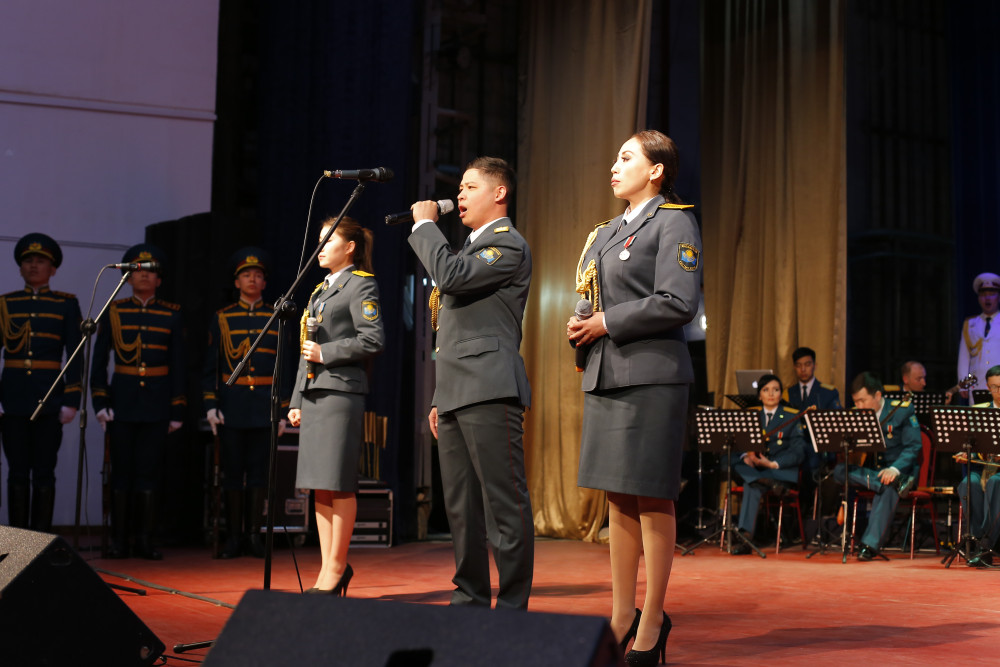 Концерт состоялся во Дворце молодежи "Мунайшы", где лучшие произведения казахских и зарубежных композиторов прозвучали в исполнении талантливых артистов Ансамбля песни и танца Национальной гвардии РК.