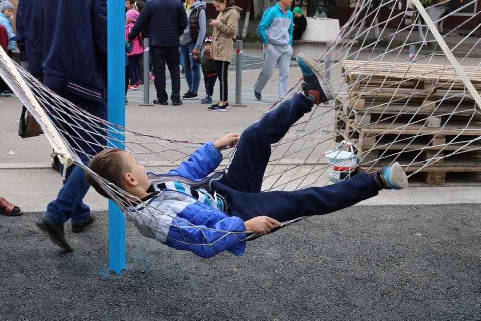 По его словам, инсталляция выполнена в оригинальном виде, где нашли сочетание картины, качели и гамаки для отдыха.