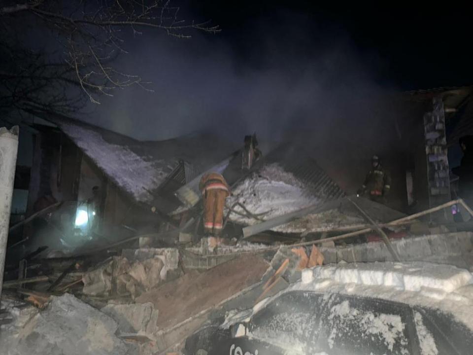 "В частном жилом доме произошел взрыв предварительно газового баллона, с последующим частичным обрушением крыши и стен на площади 84 квадратных метра, без последующего горения. До прибытия подразделений МЧС из-под завалов соседи извлекли двоих детей. Они доставлены в центральную районную больницу. Состояние детей уточняется. Врачи районной больницы оказывают детям медицинскую помощь", — говорится в сообщении.