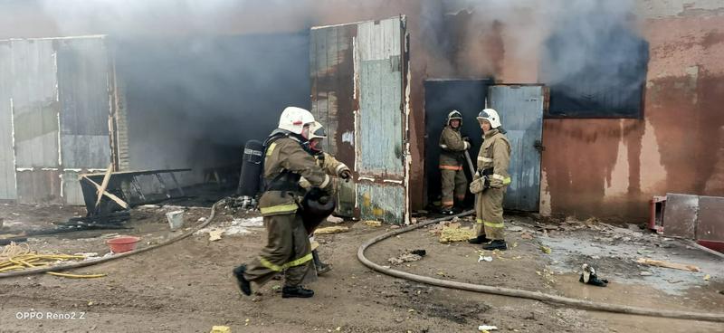 "25 декабря в 16:36 в Байзакском районе, 597 км трассы Алматы - Ташкент, вдоль дороги в боксах гаражного типа, приспособленных под столовую для рабочих, строящегося комбикормного завода при приготовлении пищи произошел взрыв газового баллона (50 литров), с последующим пожаром на площади 150 квадратных метров.