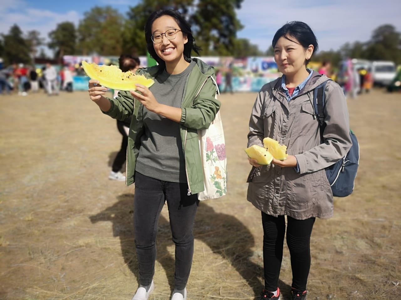 Гостья из США по имен Рэн говорит, что никогда не ела такого замечательного арбуза.