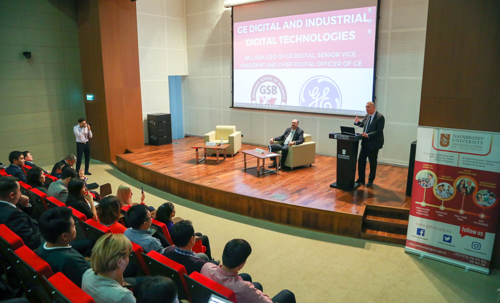 Кроме того, сегодня Билл Ру выступил в Высшей школе бизнеса Назарбаев Университета. Являясь экспертом в таких областях как новые бизнес модели, облачные вычисления, аналитика, промышленный интернет и цифровая трансформация, Билл рассказал студентам о том, что благодаря цифровой промышленной революции уже сегодня можно эффективнее управлять оборудованием, «разговаривая» с машинами на одном языке.