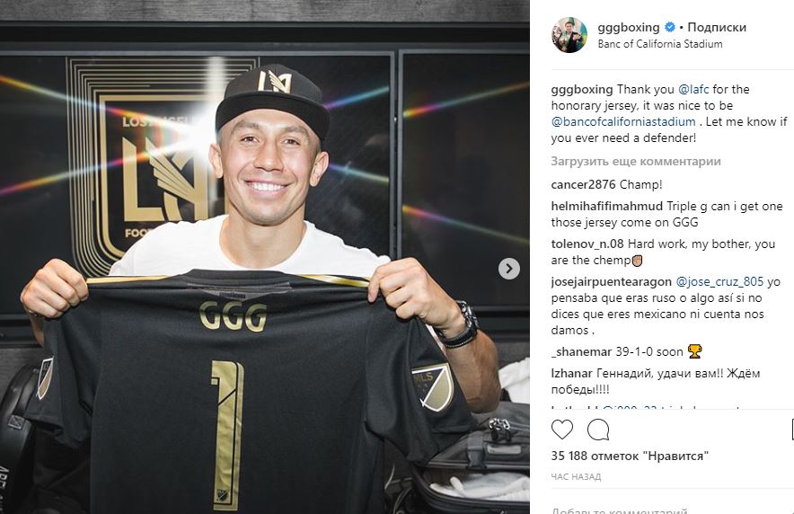 "Спасибо за почётное джерси, было приятно посетить Banc of California. Дайте мне знать, если вам понадобится защитник", — написал Головкин в Instagram и опубликовал фото со стадиона.