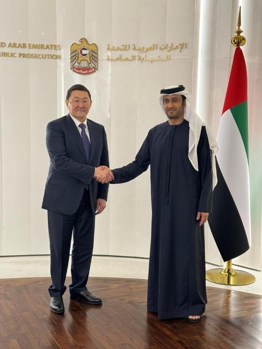 В Объединенных Арабских Эмиратах генеральный прокурор РК Берик Асылов обсудил с министром юстиции ОАЭ Абдуллой бин Султаном бин Ауад Аль-Нуайми и гГенеральным прокурором этой страны Хамадом Сейф Аль-Шамси вопросы расширения межведомственного сотрудничества и обеспечения международной безопасности.