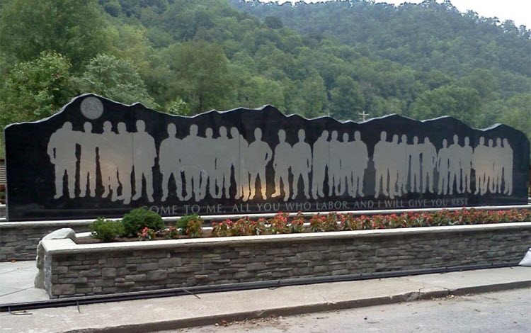 Фото: Министерство труда США (Мемориал на шахте Upper Big Branch, представляющий собой большой кусок темного камня с силуэтами погибших 29 шахтеров)