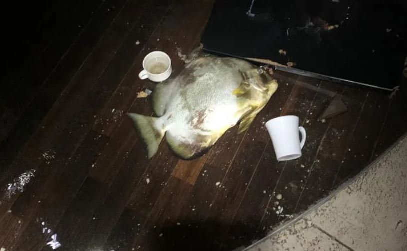 Стеклянная ёмкость высотой с шестиэтажный дом разбилась, а вся вода и 1500 рыб 100 различных видов вылились на первый и цокольный этажи, а также на улицы города, где властям пришлось перекрыть движение. Цветочные ведра перед отелем были смыты на другую сторону улицы.