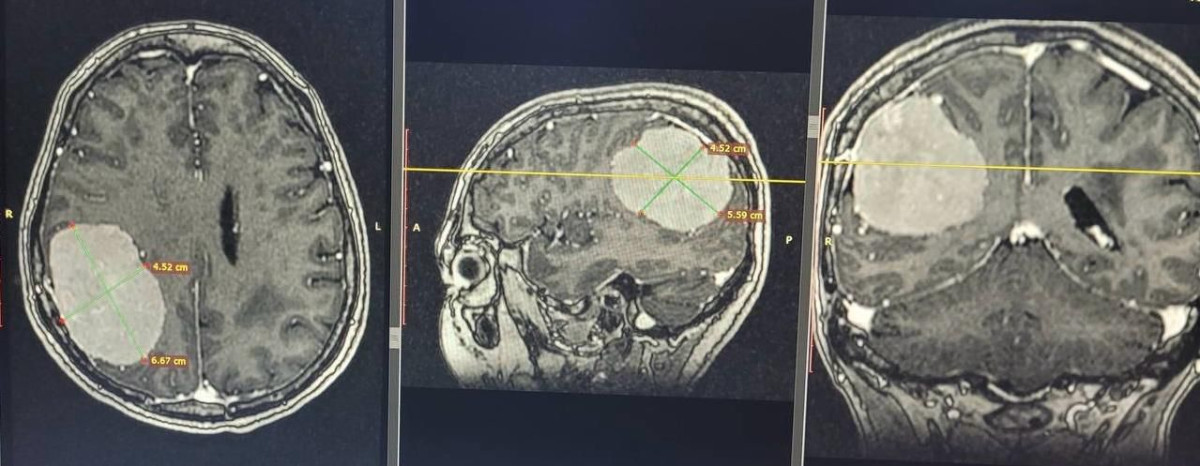 Пациентка поступила с головными болями и после проведения диагностики у неё обнаружили гигантскую опухоль головного мозга, которая длительное время не давала выраженных и чётких симптомов, сообщает пресс-служба нацгоспиталя.