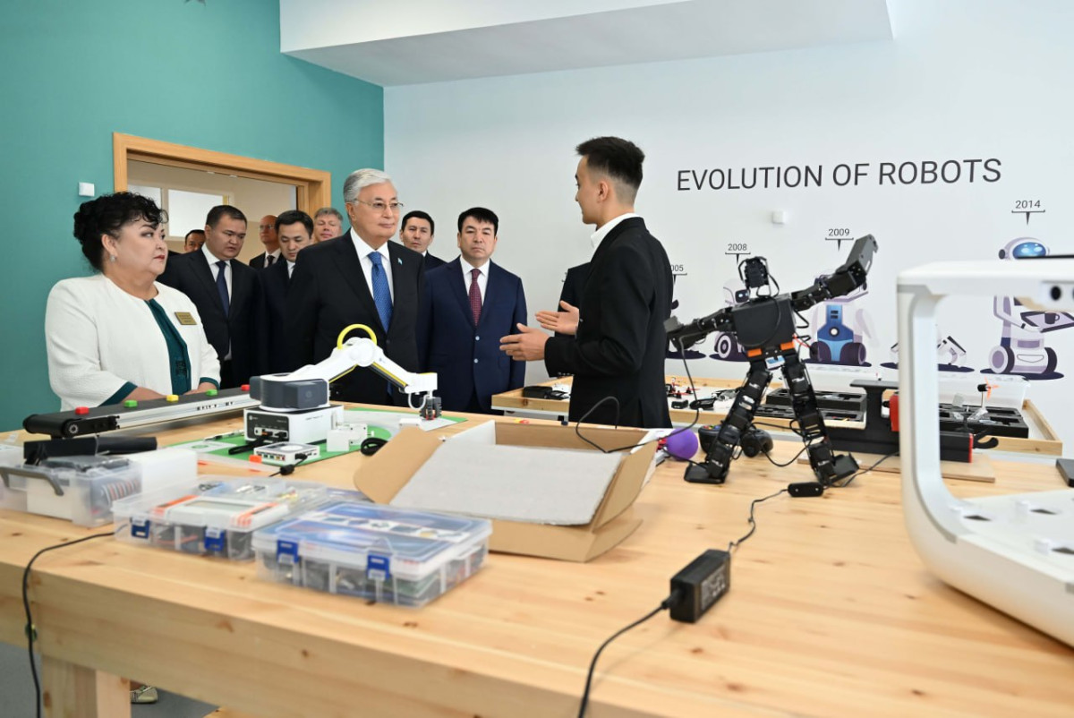Касым-Жомарту Токаеву рассказали о возможностях новой школы по развитию творческих навыков, изучению цифровых технологий и применению искусственного интеллекта, реализации проекта "Читающая школа", интеграции робототехники в учебные программы.