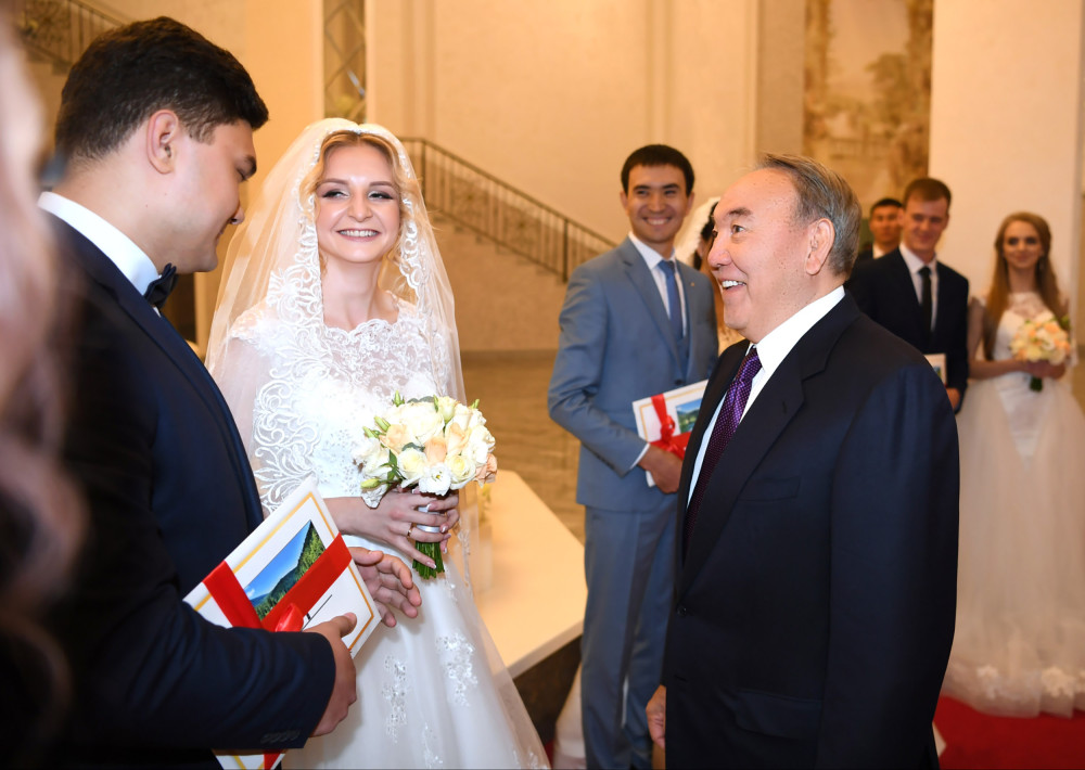 Президент Казахстана поздравил молодожёнов, пожелав им счастья и семейного благополучия.