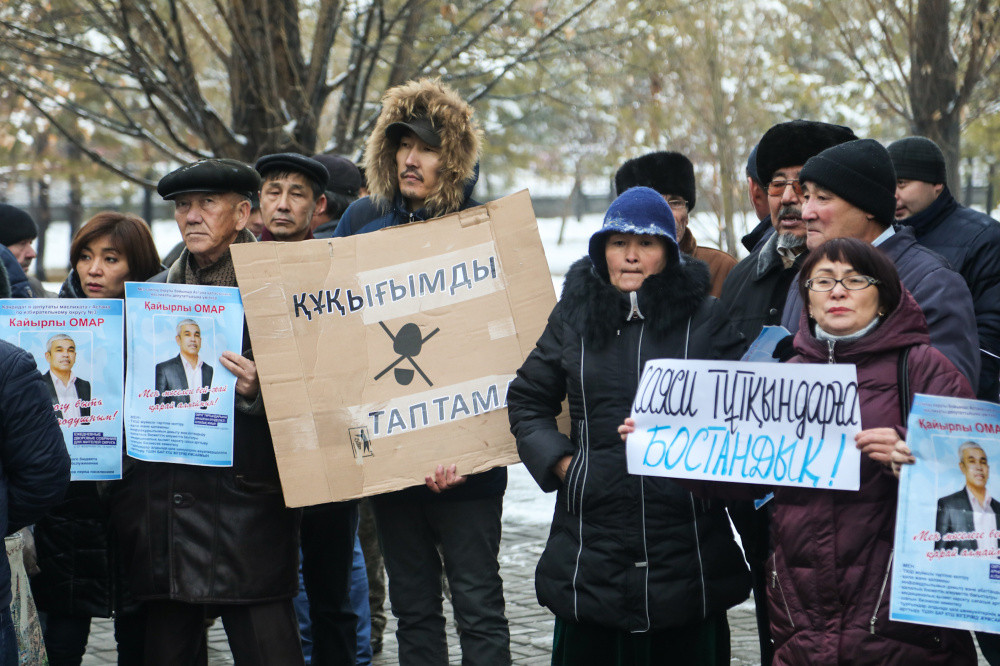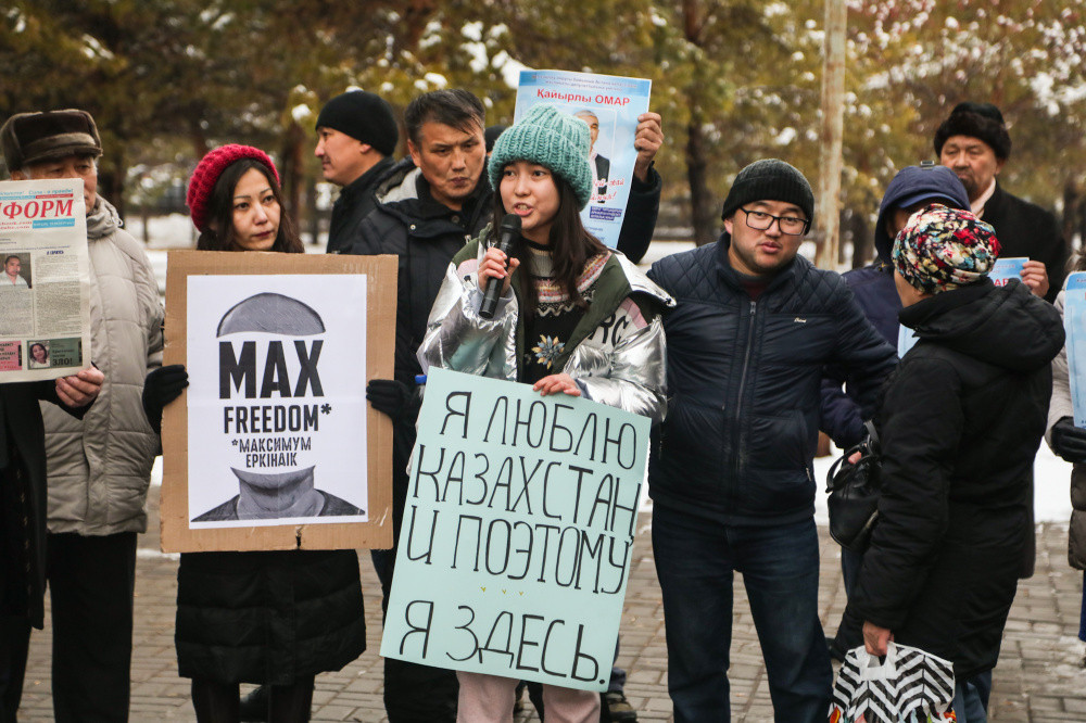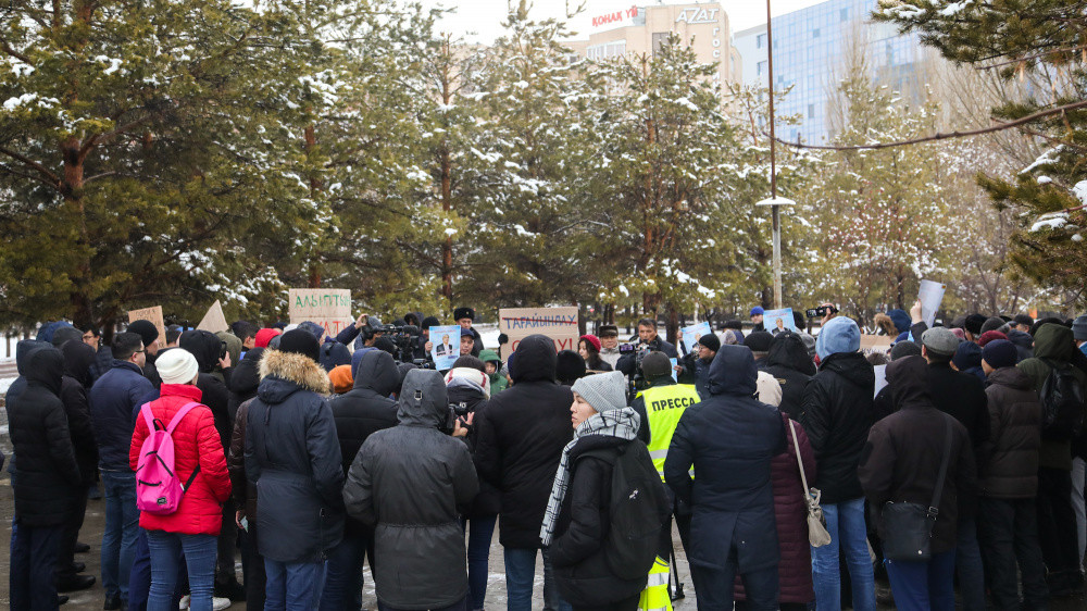 Акция началась в 14:00 в парке "Жеруйык". Несколько десятков человек пришли с баннерами "Саяси жаңғыру" ("Политическое просвещение"), "Не нарушай мои права", "Сила власти – народ", "Когда будет парламентская республика" и другими.