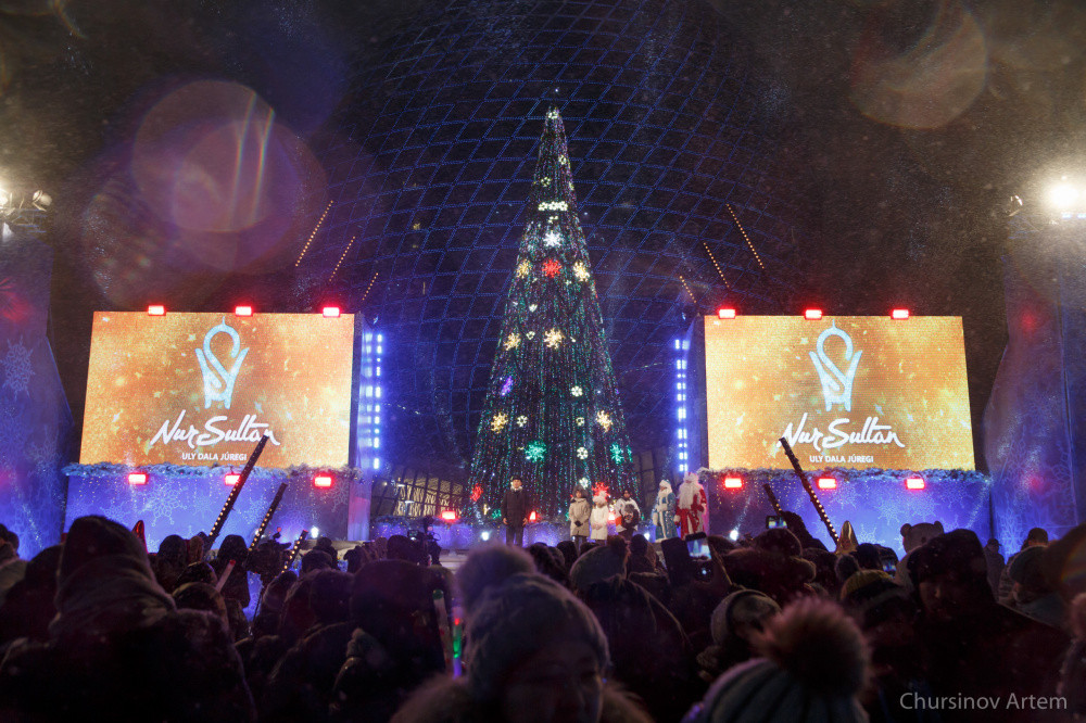 В Нур-Султане на территории ЭКСПО зажгли главную новогоднюю ёлку страны, передает корреспондент BaigeNews.kz.