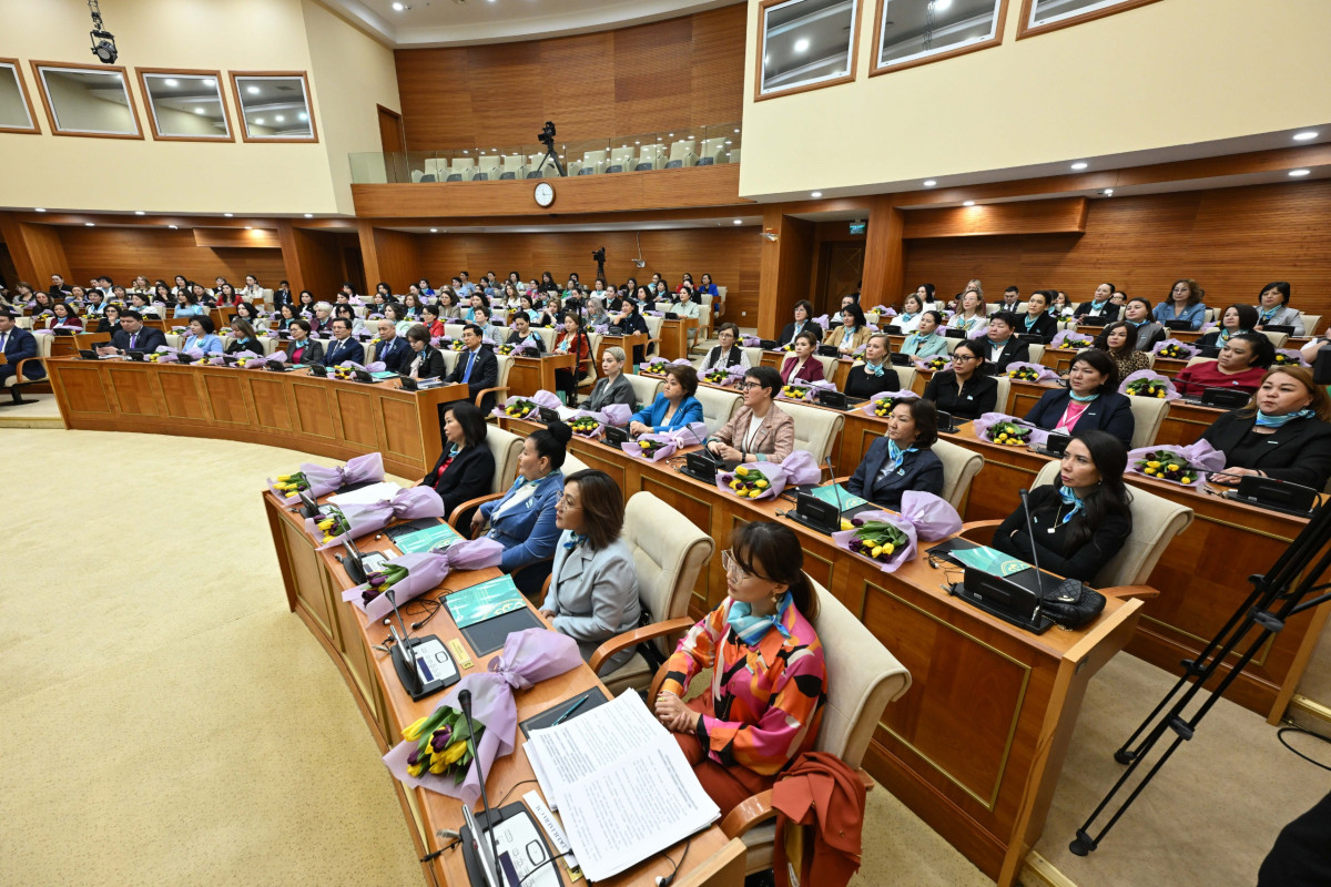 Свыше 120 активных женщин со всего Казахстана собрались для участия в обучающих курсах по женскому политическому лидерству проекта "Tomiris" Женского крыла партии "AMANAT". Сегодня, 7 марта, они встретились со Спикером Мажилиса, Председателем партии Ерланом Кошановым.