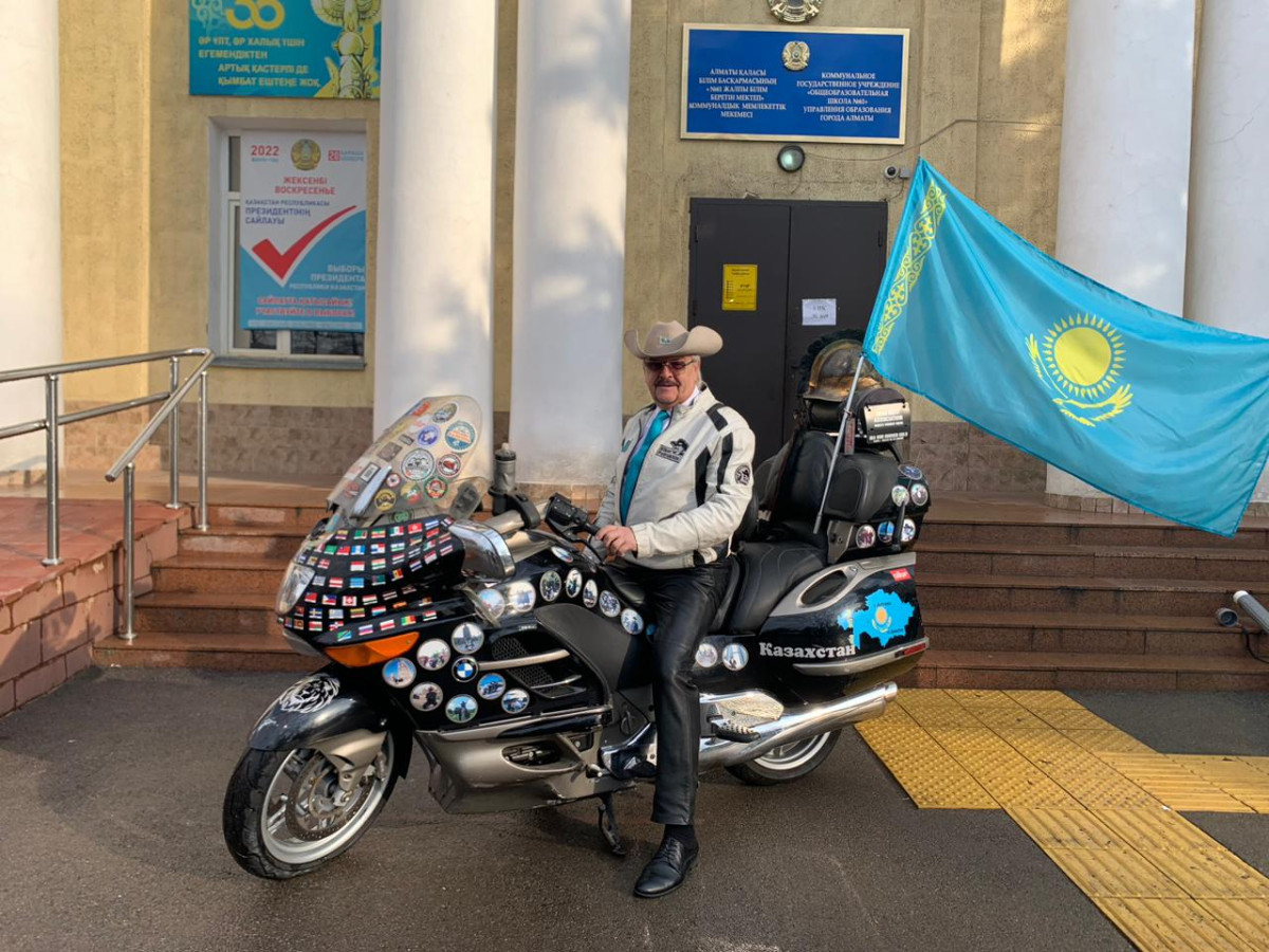 В Алматы на избирательный участок №469 приехал самый настоящий байкер — путешественник Дмитрий Петрухин объездил на своем стальном коне почти весь мир.
