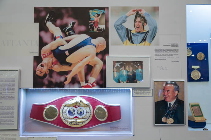 На выставке впервые была представлена большая коллекция спортивных трофеев казахстанских чемпионов, предметы и архивные материалы из личных коллекций президентов национального олимпийского комитета, которые позволят проследить историю спортивных достижений Казахстана за 25 лет.