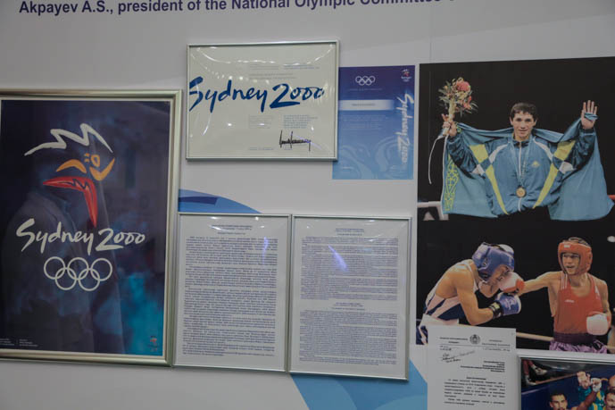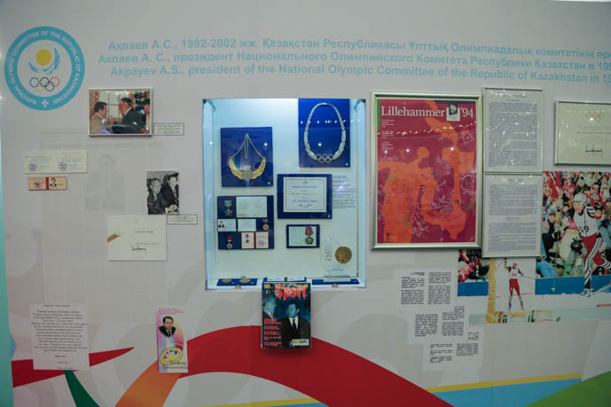 Как отметил исполнительный директор библиотеки Первого Президента РК Бейсембай Жумабеков, хронология спортивных знаменательных спортивных побед представлена последовательно, через уникальные предметы, которые бережно собирали и хранили все президенты НОК РК.