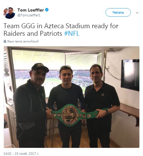 «Команда GGG на стадионе «Ацтека» готова к матчу НФЛ «Рэйдерс» - «Пэтриотс», - написал Том Леффлер.