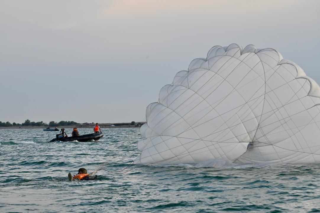 В минобороны отмечают, что парашютные прыжки на воду отличаются повышенной сложностью и требуют от десантников дополнительных навыков. Для получения допуска необходимо сдать зачеты по военно-прикладному плаванию в полной экипировке не менее 100 метров.