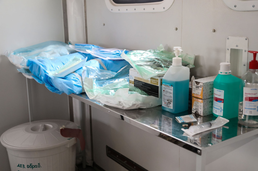 Мобильный стоматологический кабинет оснащен современной техникой.