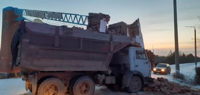 Груженный углем КамАЗ снес стелу при въезде в село в Павлодарской области