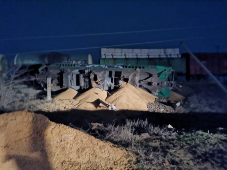 Чрезвычайное происшествие произошло 7 марта в 23.20 возле села Сайхин. Поезд, груженный зерном, следовал по маршруту Саратов - Астрахань.